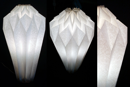 Lampe sur table en papier japonnais ou Tyvek plié.
